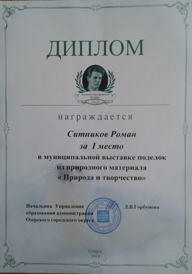 Семьи Булаевых и Ситниковых приняли участие ещё в одном муниципальном мероприятии - выставке поделок из природного материала «Природа и творчество». Роман Ситников награждён дипломом за I место.