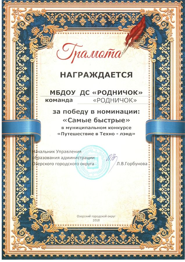 Дети нашей подготовительной к школе группы «Радуга» и их родители очень дружные и активные. Правда работаем мы вместе недавно, получилось так, что ребята к нам пришли летом 2018 года, но уже за столь короткий срок мы многого успели достичь. Приняли участие в муниципальном конкурсе «Путешествие в Техно-лэнд», нашу группу в составе команды ДОУ представляла семья Пищаевых. Команда была награждена грамотой за победу в номинации «Самые быстрые».