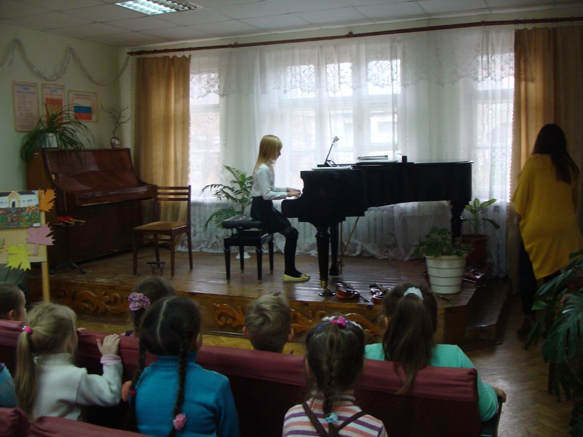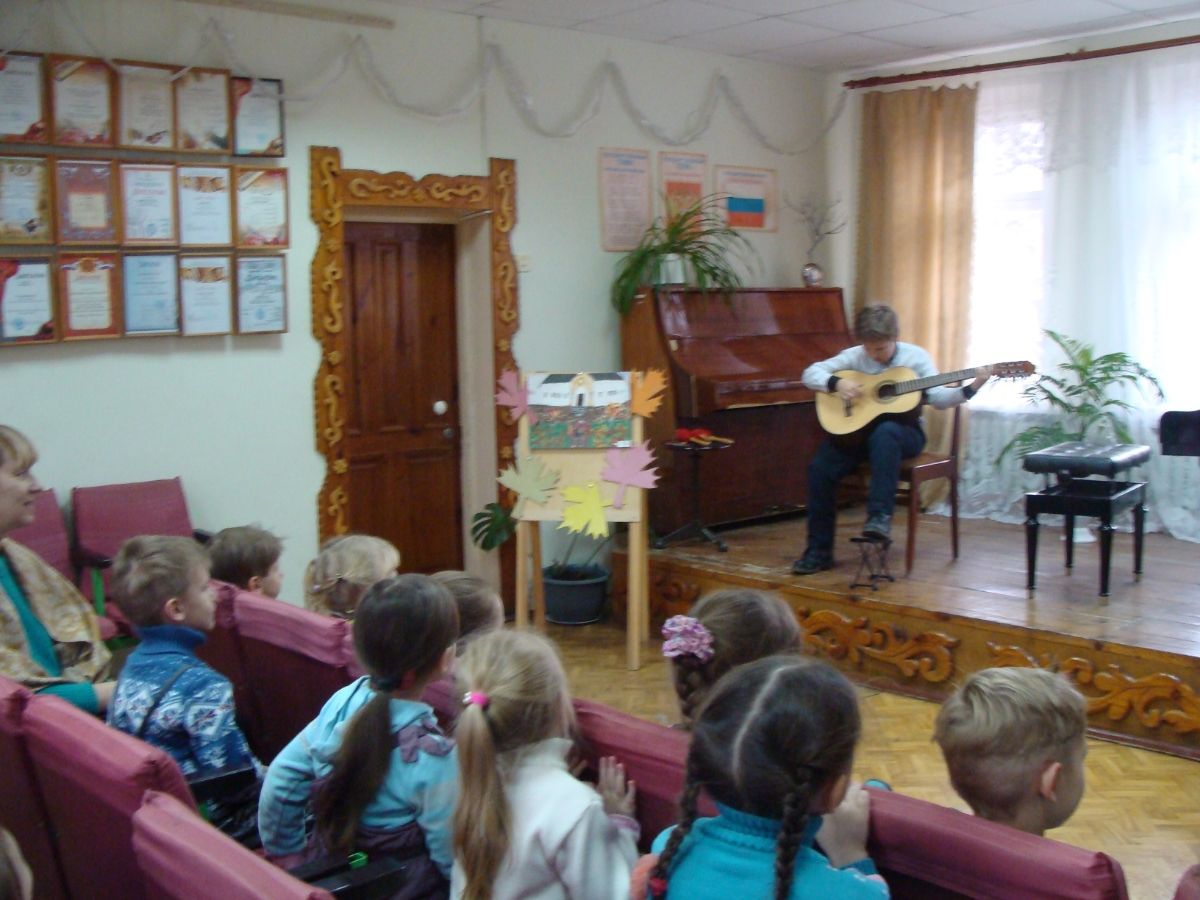 Встреча детей детского сада «Белочка» и музыкантов Детской школы искусств в «Музыкальной гостиной» называлась «Краски осени». Наши ребята познакомились с юными музыкантами – учащимися Школы искусств, с удовольствием послушали ансамбль скрипачей, юного гитариста, порадовали нас талантливые пианистки, а вокалисты исполнили весёлые детские песенки.