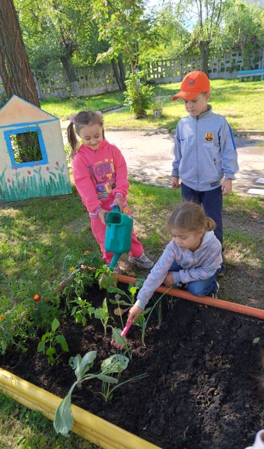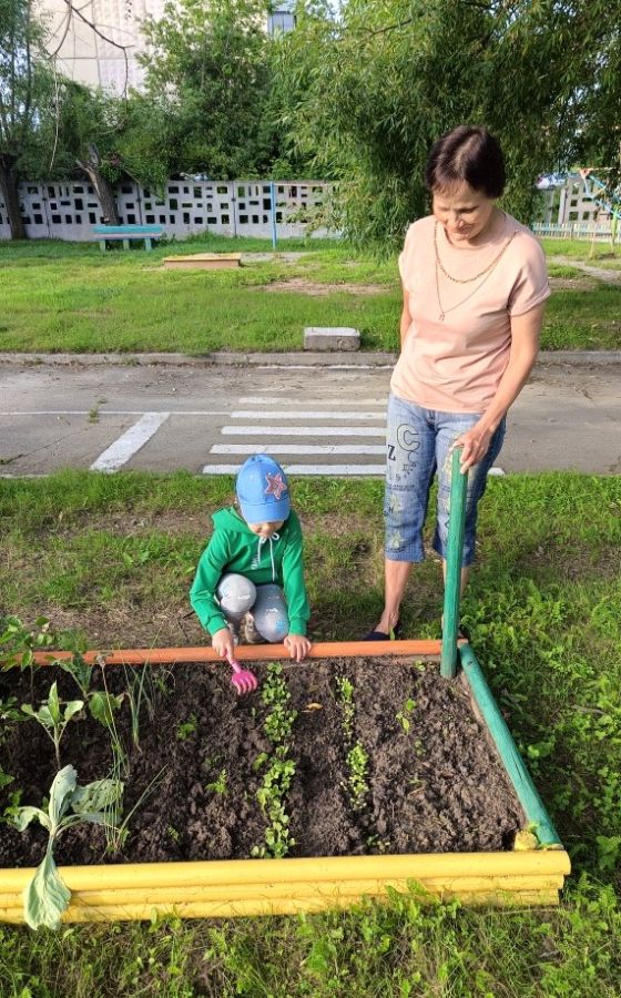 Родители помогли с установкой грядки и принесли землю. Дети познакомились с семенами овощей, подготовили почву и посеяли в огороде лук, свëклу, салат, укроп, перец.