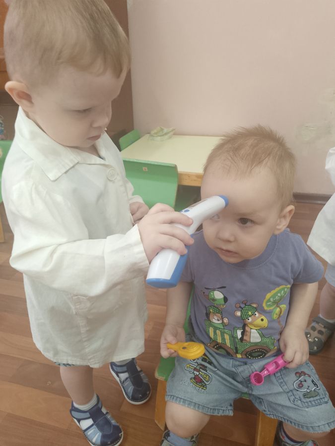 В марте в группе «Капелька» был реализован краткосрочный проект по ознакомлению детей с профессией врача. С ребятами проводились беседы, сюжетно-ролевые игры, занятия, рассматривали с ними иллюстрации, фотографии по теме, показали малышам мультфильмы.