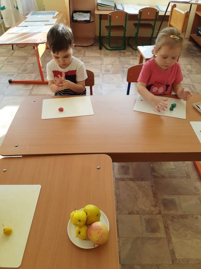 24 сентября в группе «Звездочка надежды» прошло занятие по лепке «Осенние яблочки» дети лепили предметы круглой формы. Отгадывали загадку, затем работали ладошками, делали пальчиками небольшие углубления для «ножки». Ребята работали с удовольствием, показывали друг другу свои «яблочки». Все очень старались и делали все аккуратно. В конце занятия дети получили настоящее угощение – сочные яблоки.