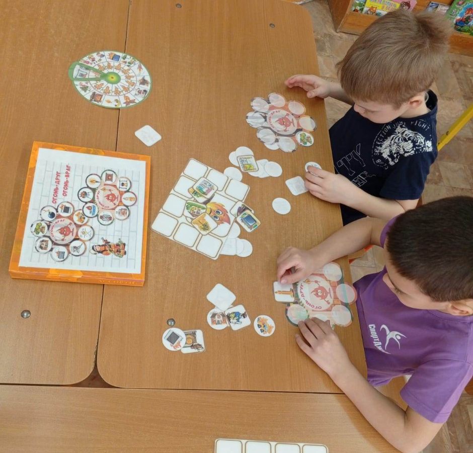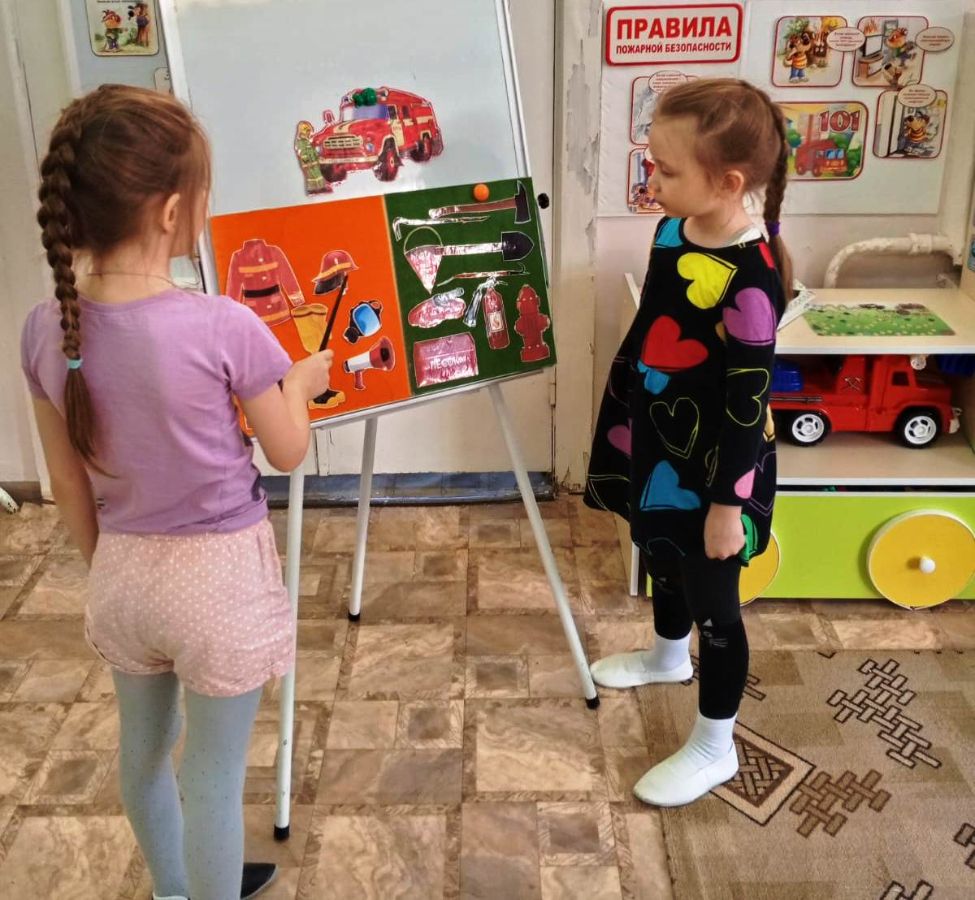 Также рассмотрели с детьми средства пожаротушения, знаки пожарной безопасности, играли в дидактические игры «Ноль - один», «Огонь-друг, огонь враг».