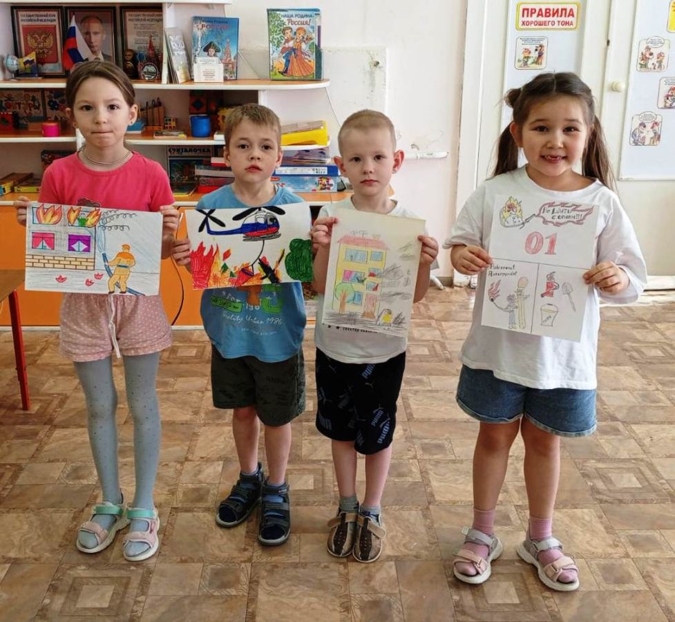 Еще раз поговорили о профессии пожарных, о их нелёгкой, опасной работе. Дети рисовали на тему «Борьба с огнём», собирали пазлы «Пожарный герой - он с огнём вступает в бой».