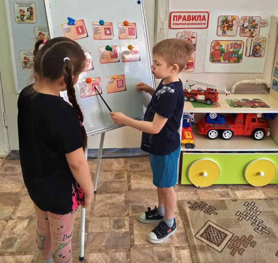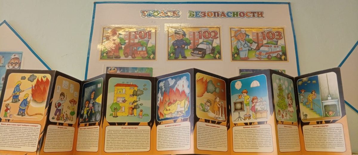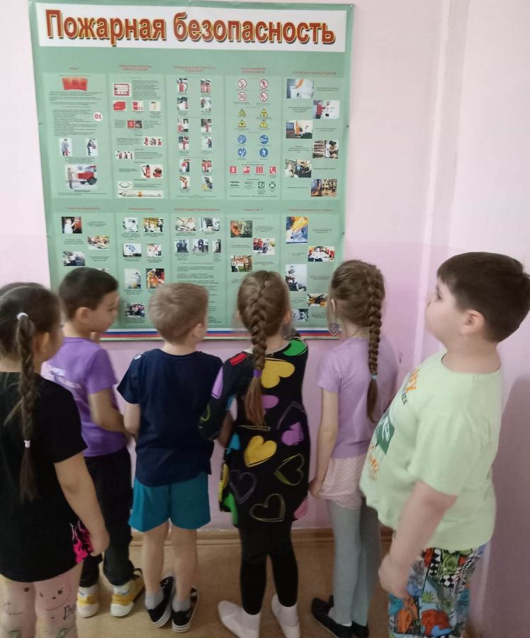Провели экскурсию по детскому саду, рассмотрев стенд по пожарной безопасности, обсудили разные опасные ситуации. Поместили в уголок для родителей папку - передвижку «О чём рассказать ребёнку».