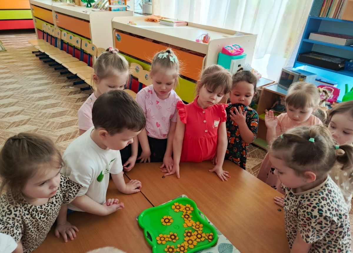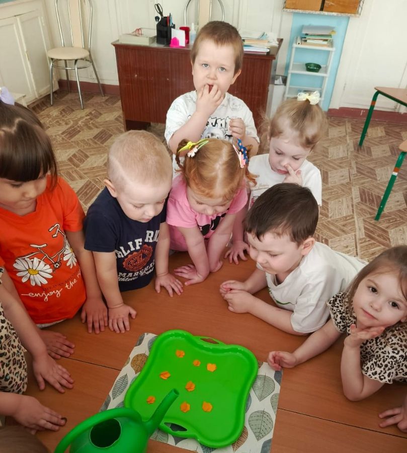 Мы набрали в емкость воды, предварительно вырезав цветы, начали запускать их в воду. И цветы начали распускаться. Дети с удивлением и восторгом наблюдали за происходящим. А потом спрашивали: «А почему так?». Этот опыт показывает, что растениям нужна вода. В конце эксперимента ребята попросили вырезать им еще цветков, для того, чтобы запустить их в воду.